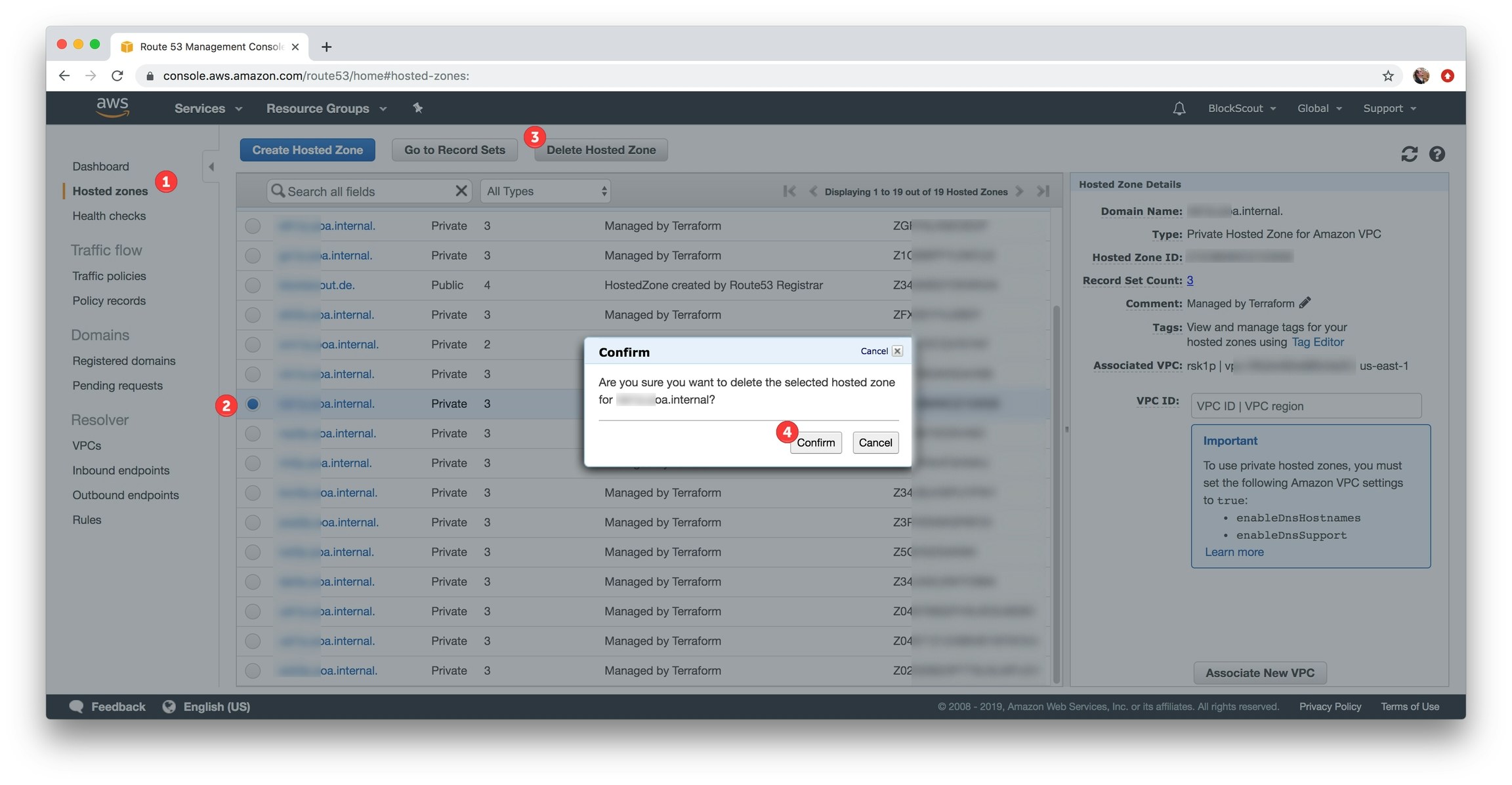 - Click Delete Hosted Zone button.
